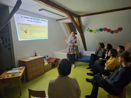 Am 21. Oktober 25 durften wir eine Weiterbildung bei Jana Stör von «be nice» erleben. Es war ein spannender und sehr lebendiger Kurs. Wir konnten viele «aha» und auch einige «O Weh» Momente erleben. Ein Input war, dass wir die Gefühle und Wahrnehmungen bewusster benennen. Im Alltag wird das oft vergessen, gibt den Kindern aber so viel halt. Wir möchten Jana nochmals herzlichst für den spannenden Abend danken. Merci