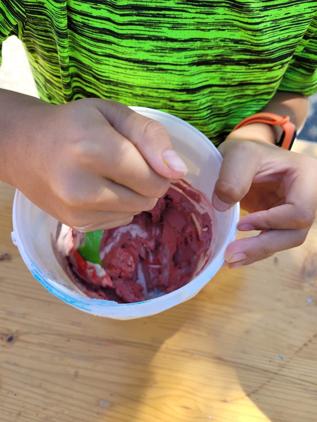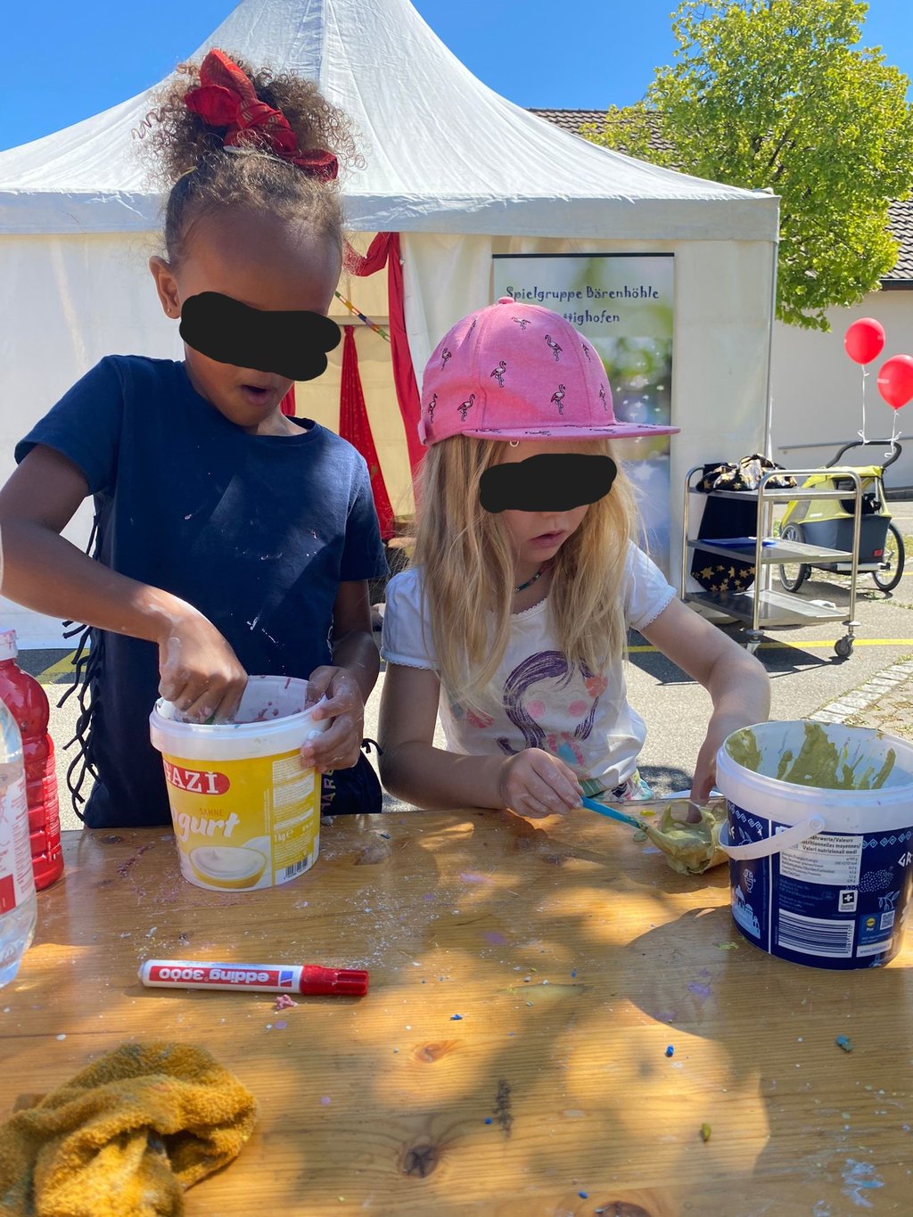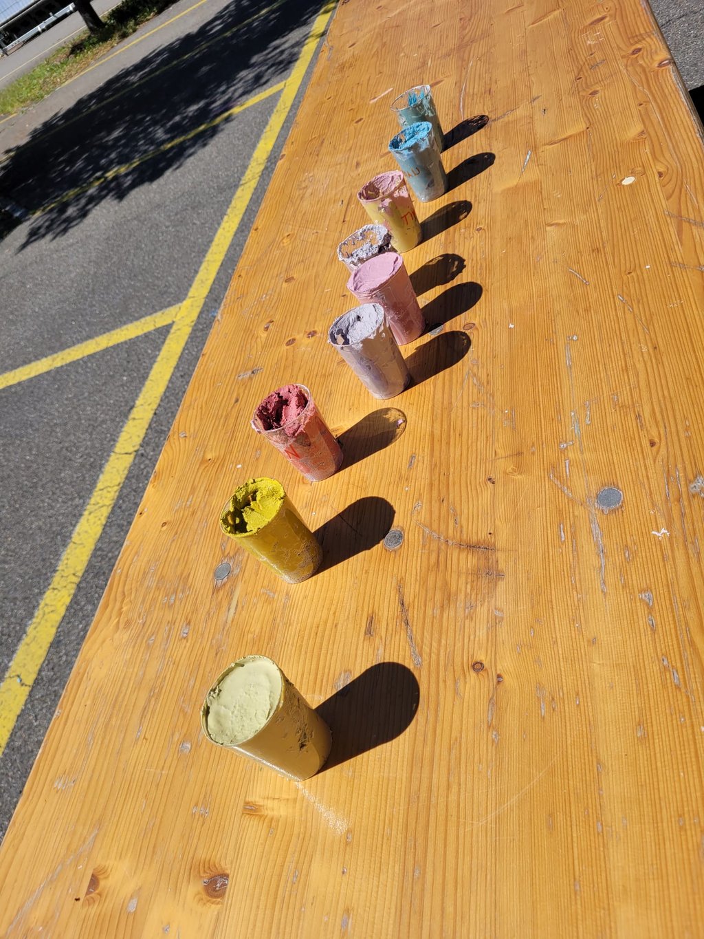 Umso mehr wurden die Sonnenstrahlen am Sonntag genossen und die Kreide bei schönstem Wetter hergestellt. Jeder Becher wurde angeschrieben, damit die Kinder ihre Kreide auch wieder finden. Es waren zwei tolle Tage mit vielen schönen Begegnungen.