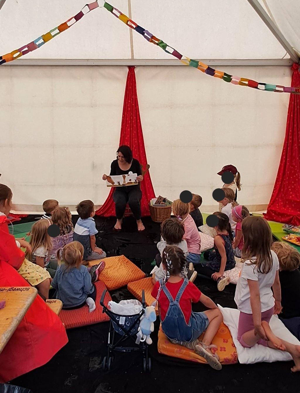 Das "Märlizelt" am Samstag wurde von schlechtem Wetter heimgesucht. Trotz allem war es gut besucht. Die Kinder liessen sich von den Regentropfen nicht stören. Gespannt lauschten sie den Stimmen der Spielgruppenleiterinnen.