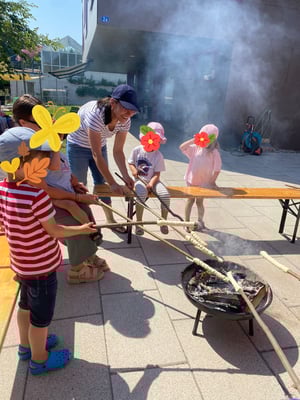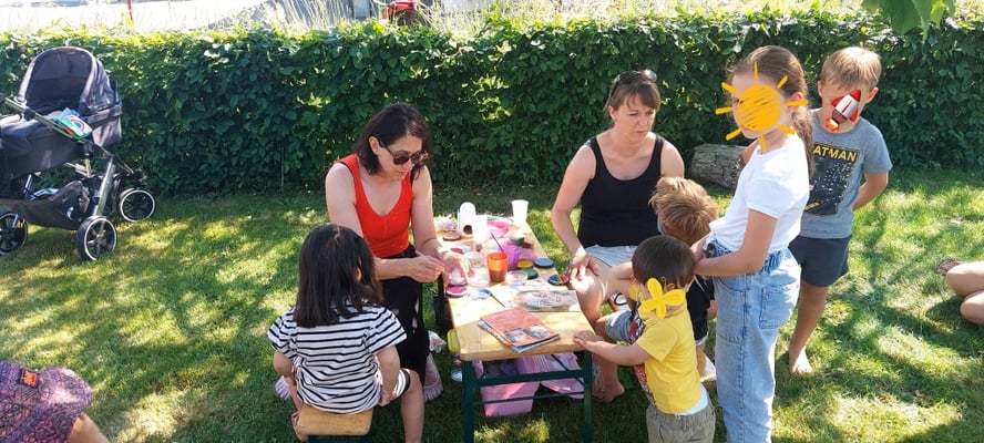 Das diesjährige Spielgruppenfest der Bärenhöhle fand bei traumhaftem Wetter statt. Die Kinder spielten ausgelassen im Garten, suchten fleissig im Sandkasten nach einem Schatz oder liessen sich schminken.
